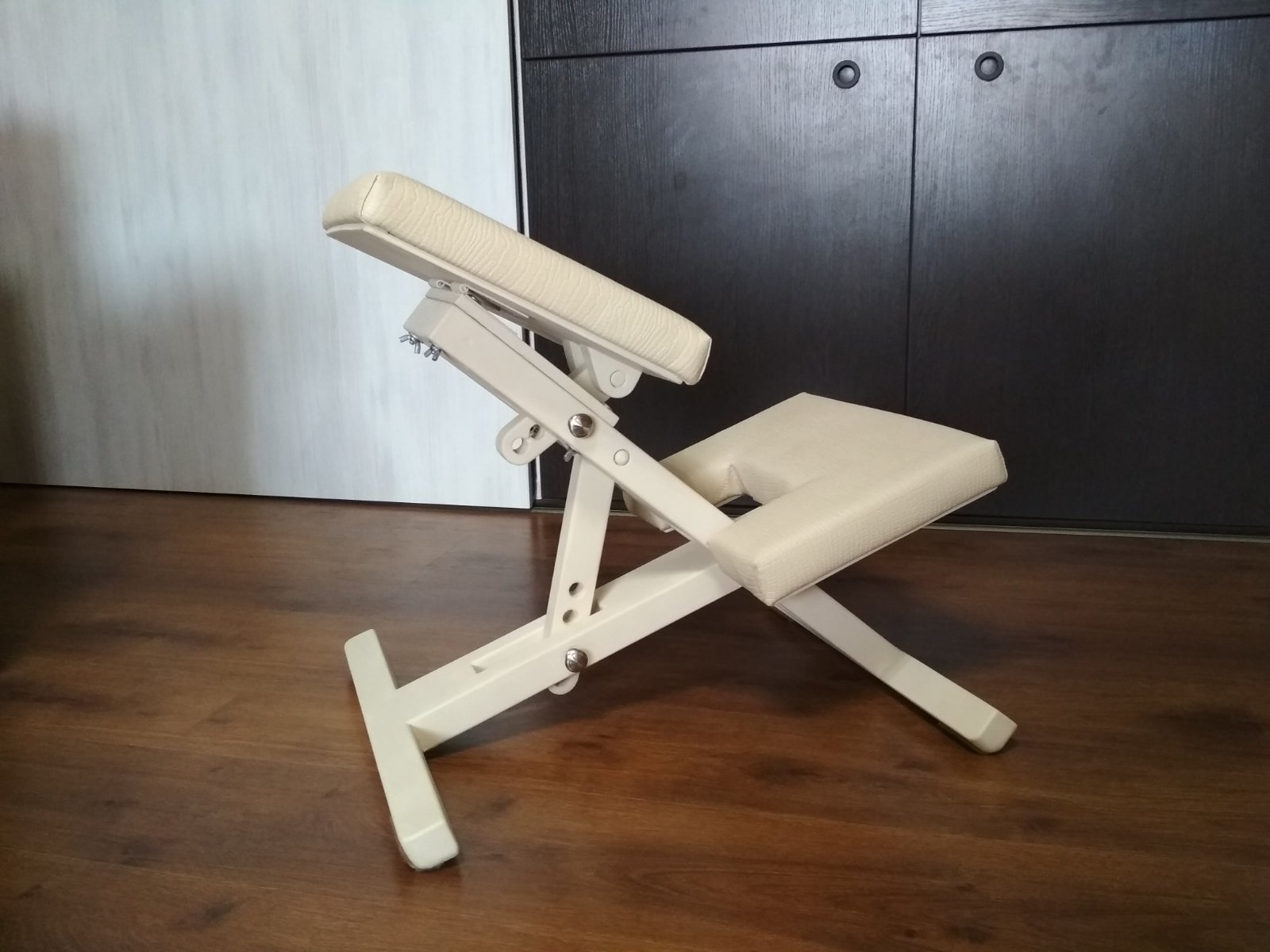 Конструкция коленного стула обеспечивает 3вида регулировки: ✔ по длине бедра (2 положения) ✔ по углу сидения (4 положения) ✔ по высоте сидения (3 положения)